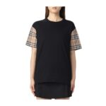La t shirt nera Celine con logo centrale e profili bianchi a contrasto si inserisce perfettamente tra i capi chiave della primavera estate 2026. E’ un modello dalla linea pulita, manica corta e vestibilita’ regolare, ma con un impatto visivo forte grazie alla scritta frontale e al dettaglio chiaro su collo e maniche. Si collega bene alla stagione calda per la leggerezza del cotone e per la facilita’ con cui puo’ essere abbinata a look quotidiani ma curati. E’ rilevante per un target che ama il lusso minimal ma riconoscibile, donne che cercano capi iconici senza eccessi decorativi. Rispetto alla stagione precedente il logo resta protagonista, ma in una versione piu’ grafica e lineare. Le influenze arrivano dallo stile parigino contemporaneo, fatto di contrasti netti e silhouette semplici. Non e’ un trend passeggero, perche’ la t shirt nera con scritta bold e’ diventata un classico moderno del guardaroba luxury.